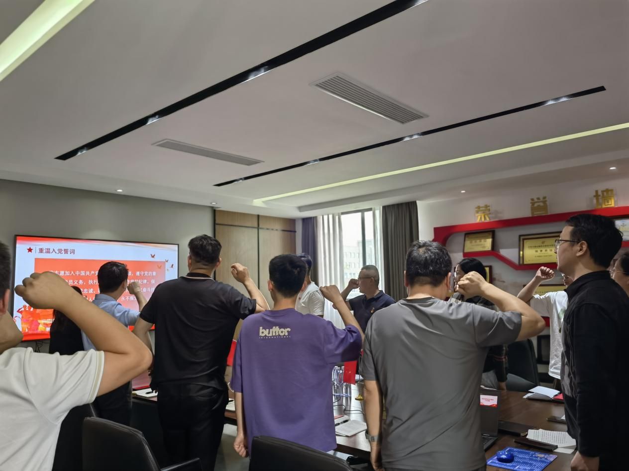 随后,支部书记带领全体党员重温了入党誓词,铿锵有力的誓言响彻现场,让每一位党员再次深刻体会到自己作为党员的身份与责任,进一步增强党员使命感。