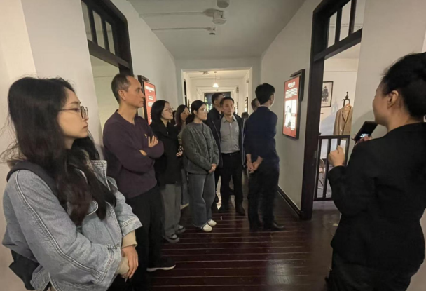 在讲解员的指引和讲解下,队伍沿着当年党中央领导们走过的青石板路来到八路军重庆办事处旧址,木质结构的小楼保留着当年的原貌。走进毛泽东、周恩来、董必武等同志的办公室和卧室,一张旧藤椅、一部老式电话机、一个装满文件的公文包,仿佛主人们刚刚离开。同志们边参观边认真倾听着讲解员讲述的董必武同志为六角钱差旅费作深刻检讨、周恩来同志拒绝领取国民党发放高薪、以及毛泽东同志以《沁园春·雪》这篇旷世杰作作为契机,领导中国共产党于重庆谈判期间在取得“政战”“枪战”成果的基础上,又打赢了“笔战”,以全胜的战绩永载史册等故事,无不感慨万千……在二楼的会议室里,复刻的南方局会议场景中,“多功能”会议桌、搪瓷缸、旧地图摆放整齐,仿佛置身当年的会议现场,感受着革命者运筹帷幄、共商国是的坚定信念。